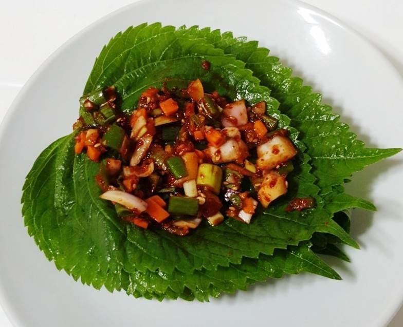 香り高い生の荏胡麻の葉の和え物