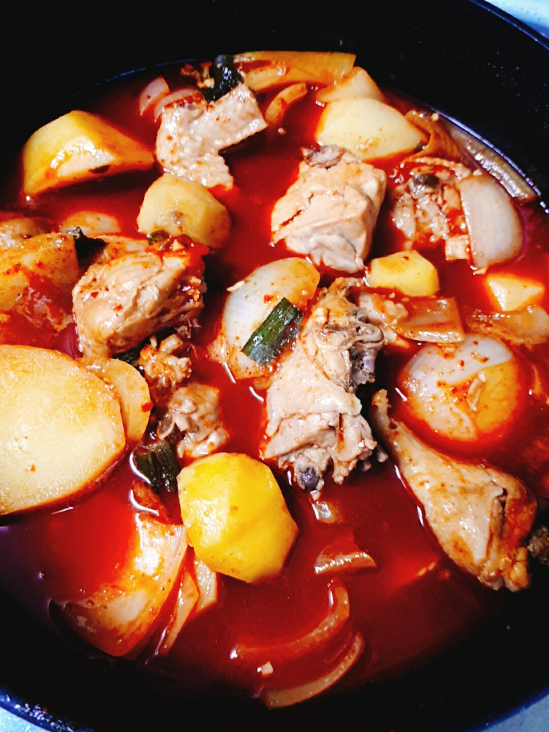 ご飯に混ぜて食べやすいように、ソースを煮詰めたタットリタンを作りました。ピリ辛で甘い味付けが鶏肉と野菜に深く染み込み、ご飯が進むこと間違いなしです。特別な日にも、普段の食卓を豊かにしてくれるこのタットリタンのレシピをぜひお試しください!