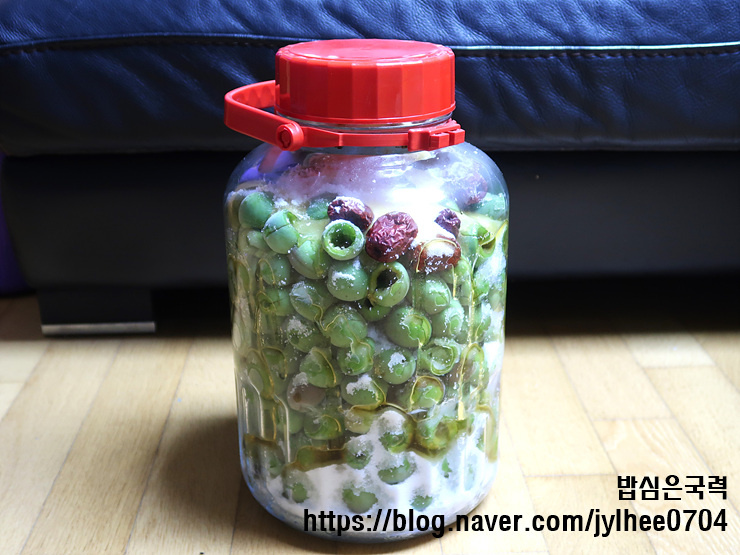 漬けた翌日には、すでに砂糖がたくさん溶けているのがわかります。梅シロップは最低90日から100日間熟成させるのが理想的です。90日ほど熟成したら、梅とナツメの実を取り除き、澄んだ梅シロップの原液だけを別に保管します。100日を過ぎたら、小さな瓶に分けて冷蔵庫で保管してください。長く熟成させるほど、より深く豊かな味わいを楽しめます。心を込めて自家製で作った梅シロップは、市販品とは比べ物にならない特別な品質を誇ります。この夏、健康的でおいしい梅シロップ作りに挑戦してみてください!